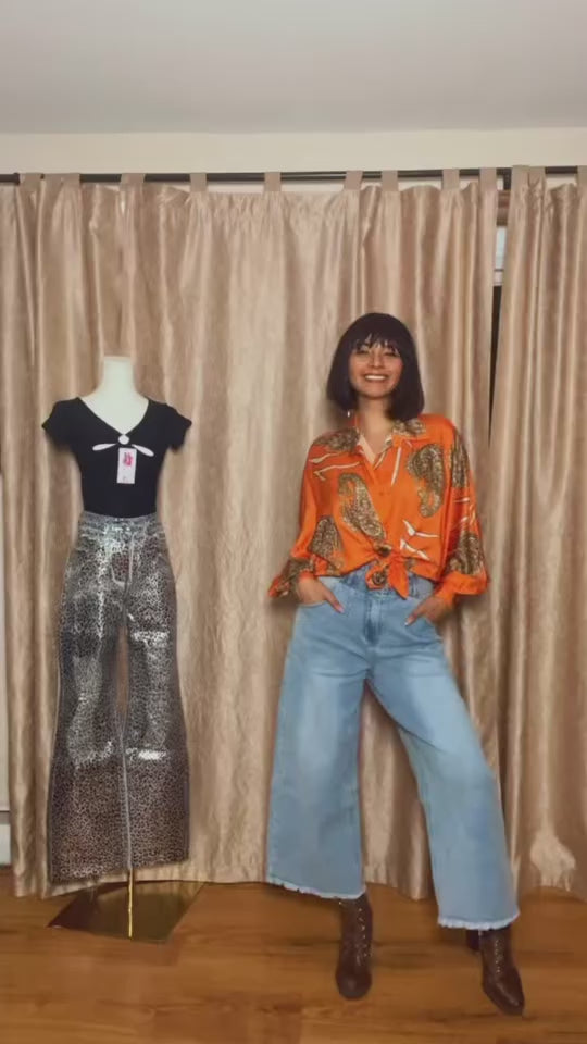 ABSTRACT PRINTED SATIN TOP